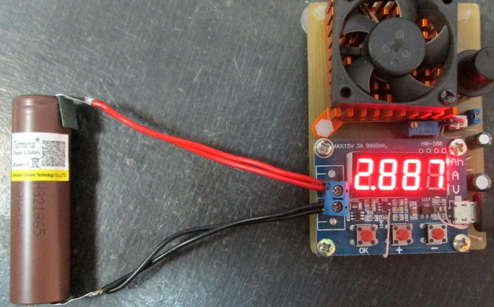 Измерения одного с помощью подкованной китайской блохи (ток разряда 600mА, отсечка 2,7v) показали ёмкость 2887 mAh.