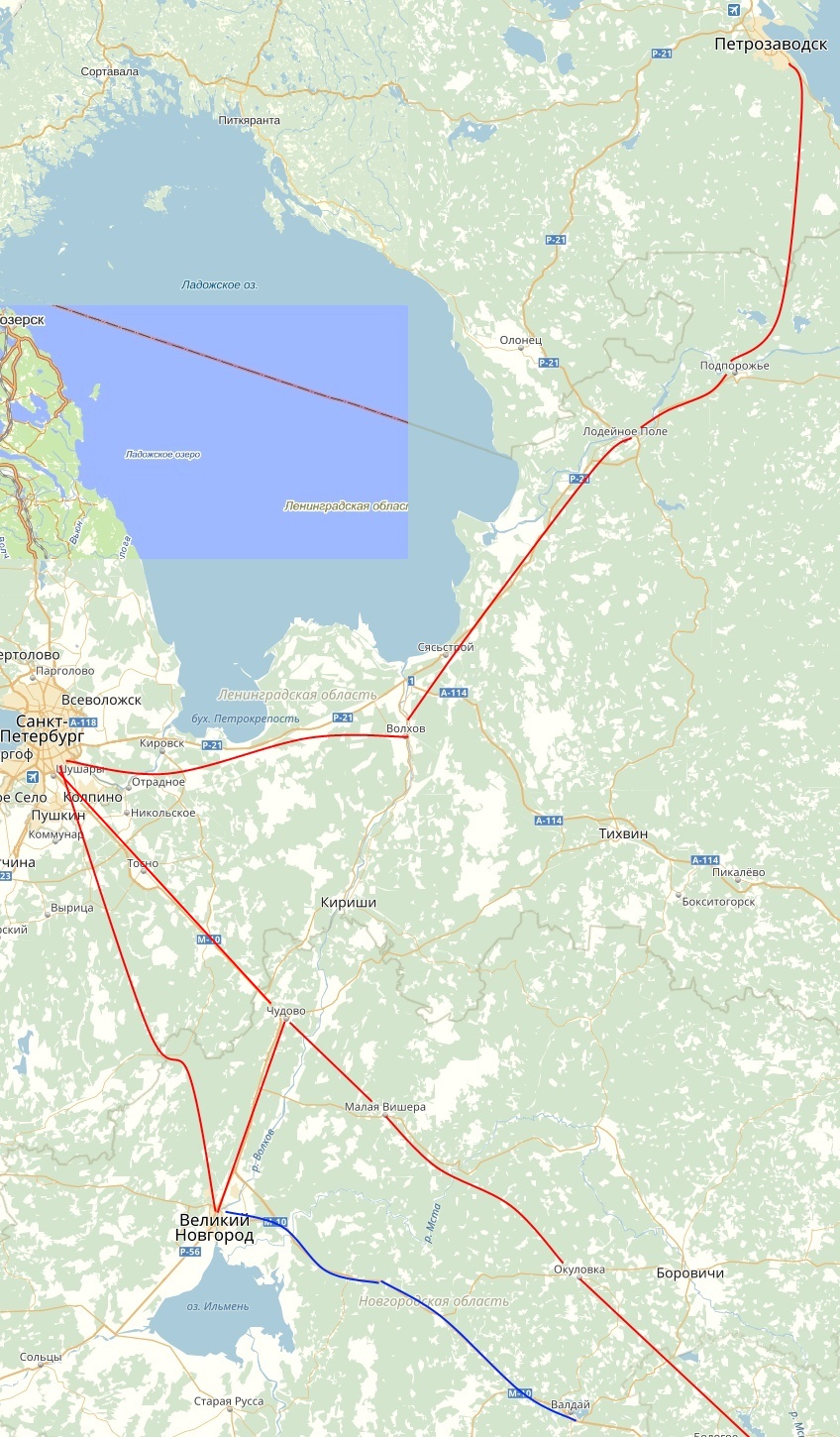 А полный путь такой - Петрозаводск - Питер - В.Новгород - Валдай - В.Новгород - Чудово - М.Вишера - Окуловка