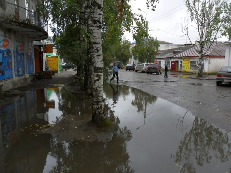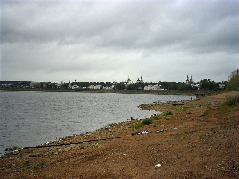 Проехал на автобусе через весь город с севера на юг. Спустился к реке, пытался разглядеть где там р.Юг - не особо понял. И пошёл по берегу к центру города....
