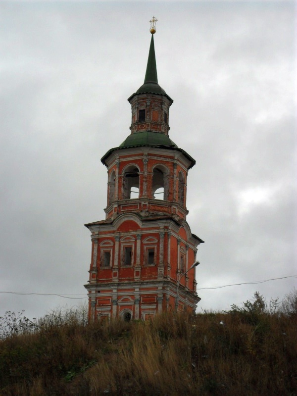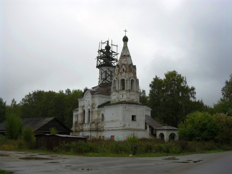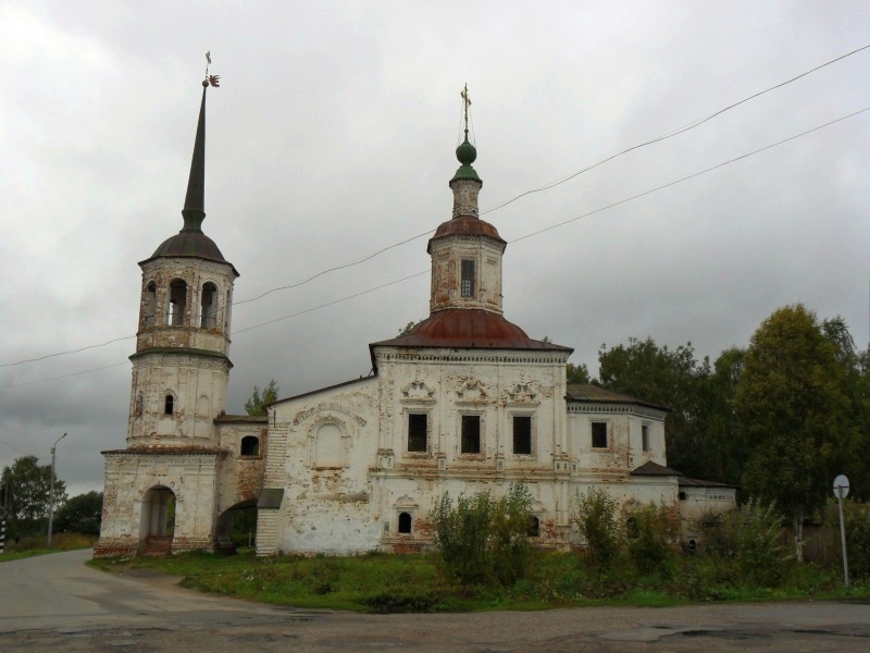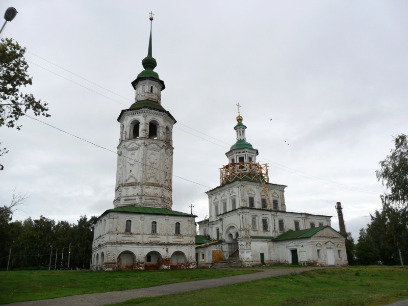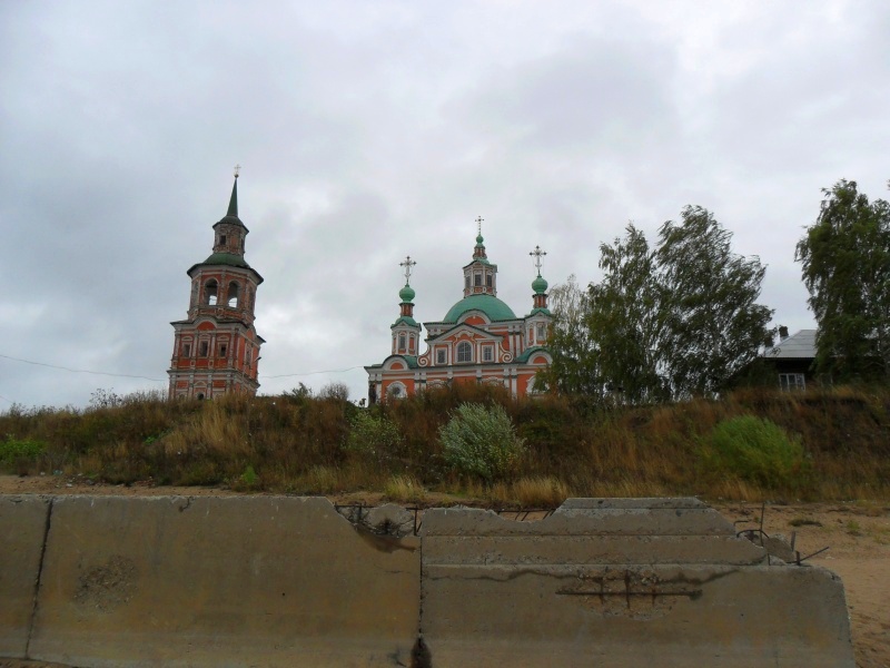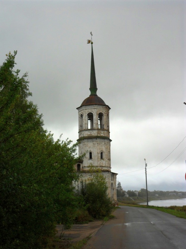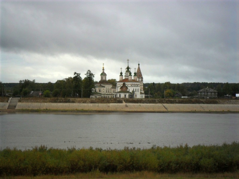 Церкви Сергия Радонежского (слева) и Дмитрия Солунского на правом берегу Сухоны в деревне Дымково.
