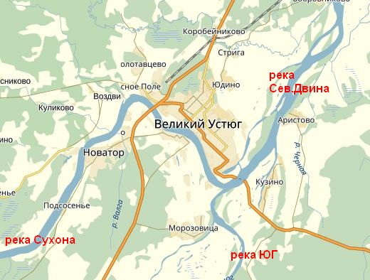 Город расположен на левом берегу Сухоны, недалеко от её слияния с Югом.
