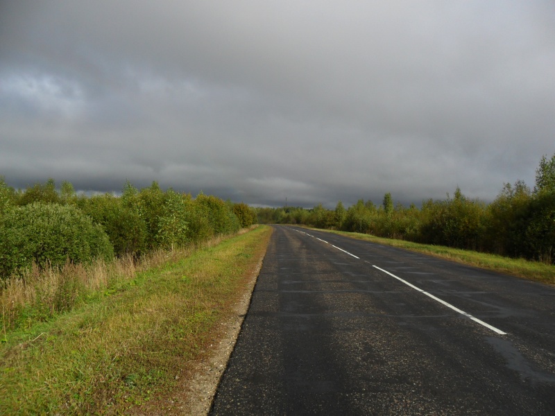 Подвозили трое: пенсионер на Ниве (возвращался домой в деревню), потом здоровый мужик на Оке (ему вроде в Пыщуг надо было, но он проехал развилку и довёз меня до придорожного кафэ, сам потом поехал назад). Я перекусил в кафешке и потопал дальше (как назло все, кто был там, ехали в сторону Никольска!).