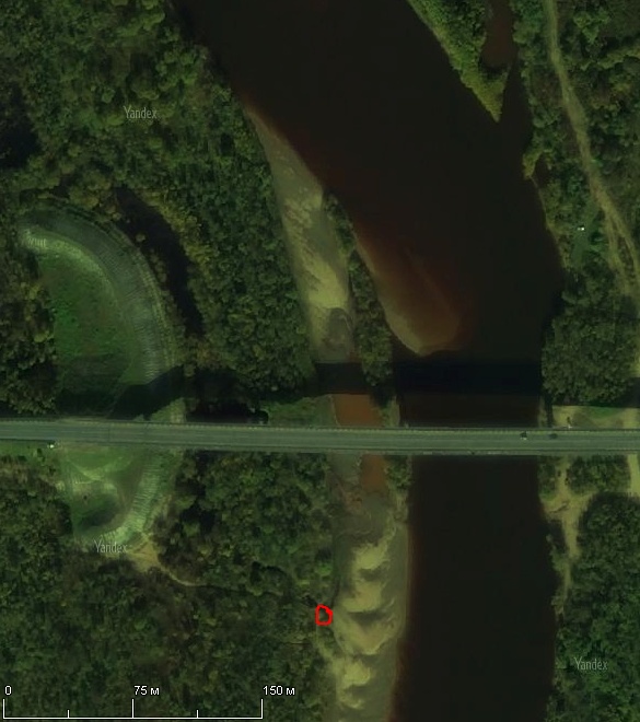 Вид на место ночёвки со спутника - мост, Ветлуга. Воды, правда, было поменьше чем на этом спутниковом снимке - пляж и река были примерно одинаковы по ширине....