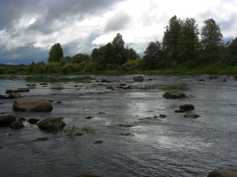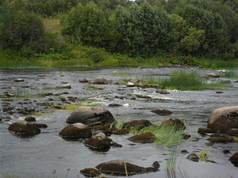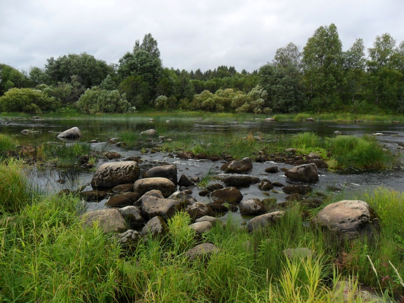 Воды мало, рыбы нет (один малёк крутится). Я пытался представить, что здесь происходит весной, в половодье, как всё бурлит.... или может вода так поднимается, что камней вообще не видно?