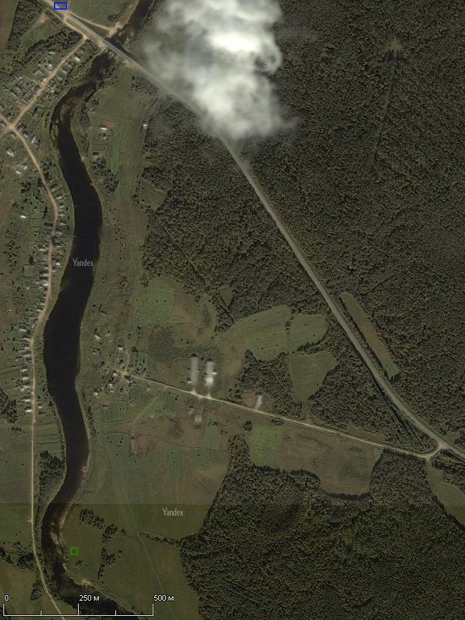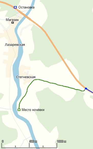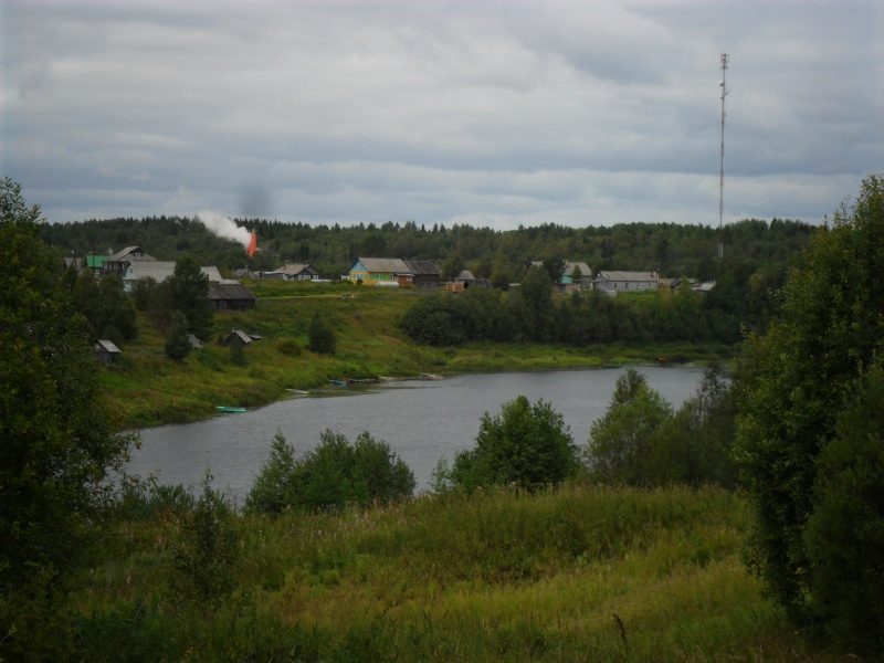 Остановка за рекой, но попросили водителя высадить нас на развилке перед деревней. День клонился к закату, погода была мрачная.