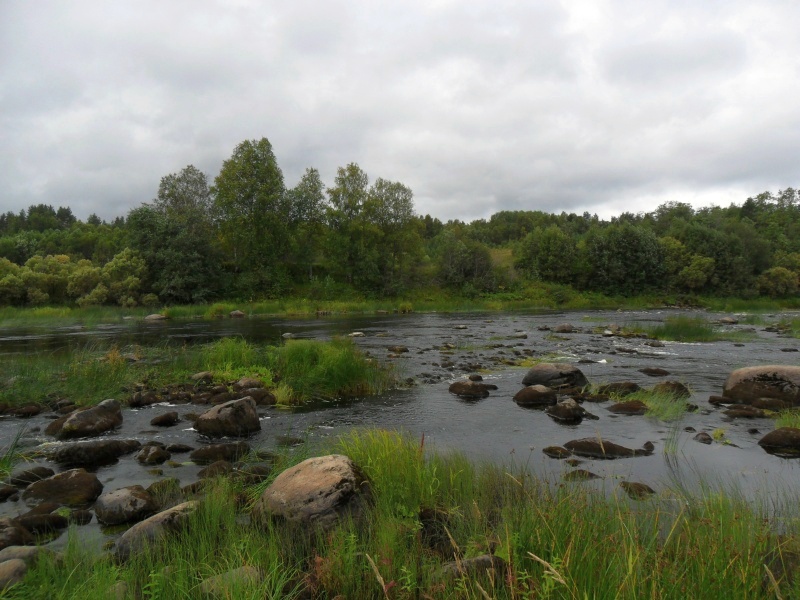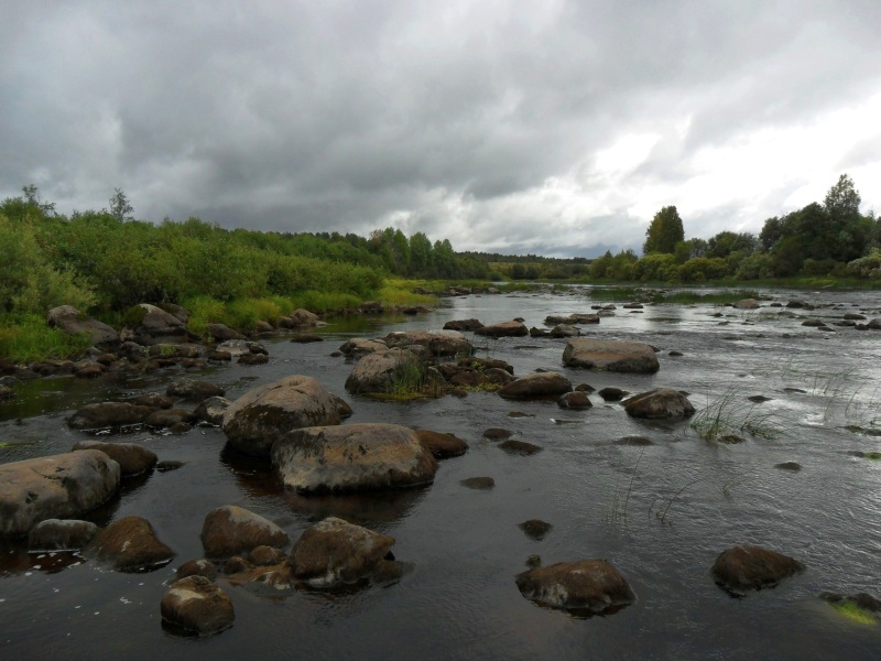 Дошли до реки, поставили полатки и буквально через полчаса начался ливень. То ослабевая, то усиливаясь, он шёл полночи. Заснуть было трудно, т.к. чувствуешь себя внутри барабана, на котором играют зажигательные мелодии одна за одной.