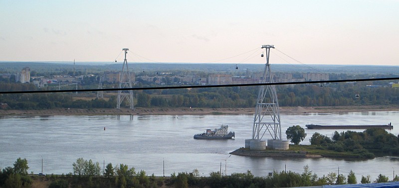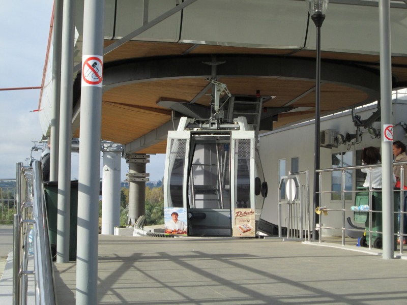 Приехал в Бор. В кабинку помещается 6 человек. Т.к. утром большинство едет в Нижний, то я ехал один. Снял для ребят видеоролик минут на 9. Виды открываются шикарные, когда над Волгой на такой высоте катишься.