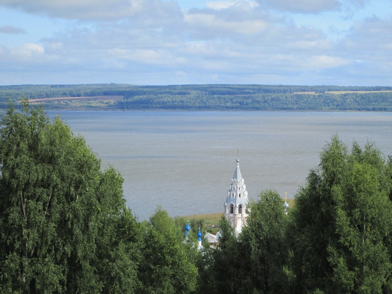 Несколько видов с горы Балчуг, где была вторая крепость, на город и озеро. На гору ведёт тропа с двумя длинными лестницами, наверху беседка и поклонный крест. Крест против солнца сфотографировать не удалось. Крест как крест, главное - о чём он должен напоминать....