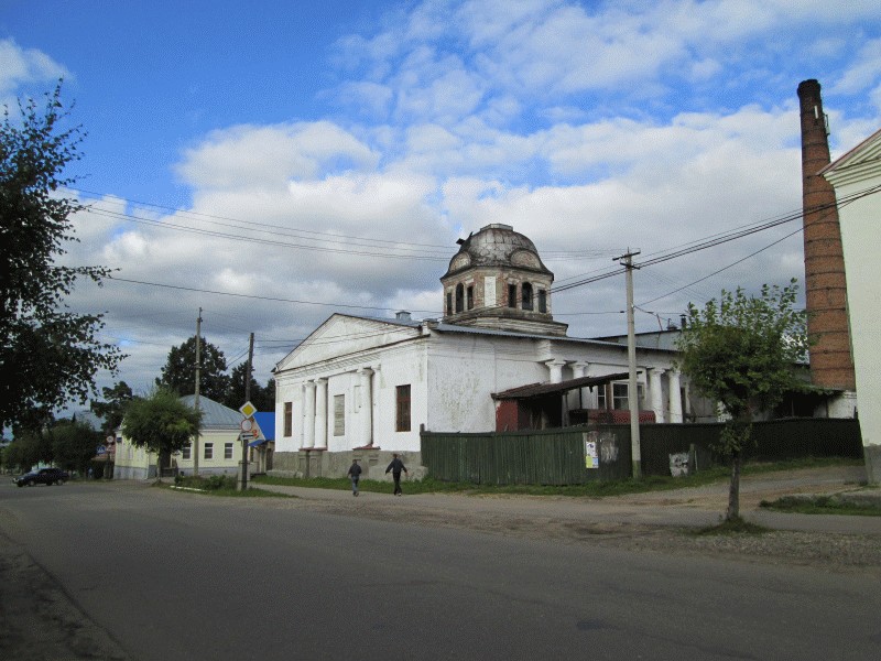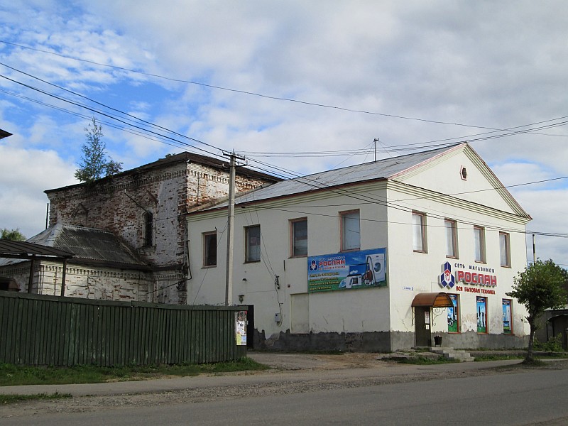 Вот рядом, бок о бок, можно сказать, ещё одна заброшенная церковь, но половину занимает магазин - значит РПЦ ещё к рукам не прибрала...