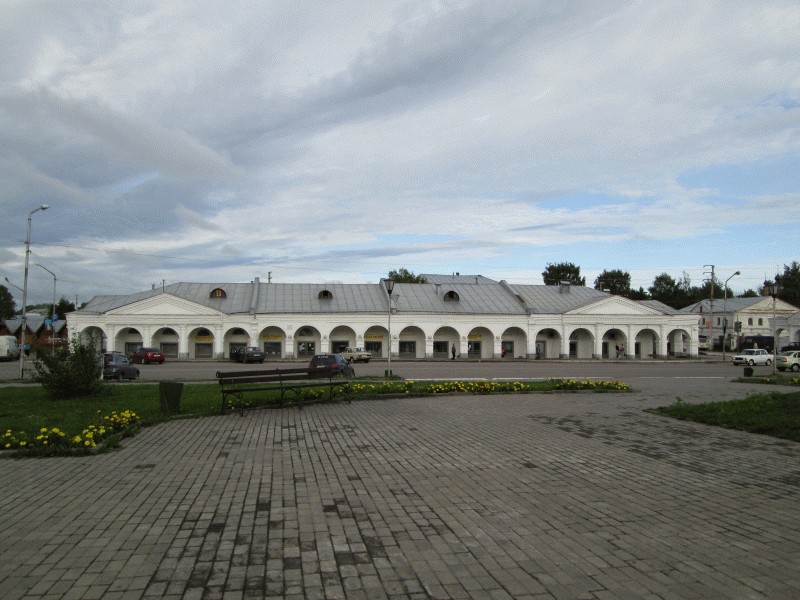 Торговые ряды с другой стороны площади. Архитектурно отличаются от собратьев напротив. Явно "вторая" очередь была по другому плану построена.