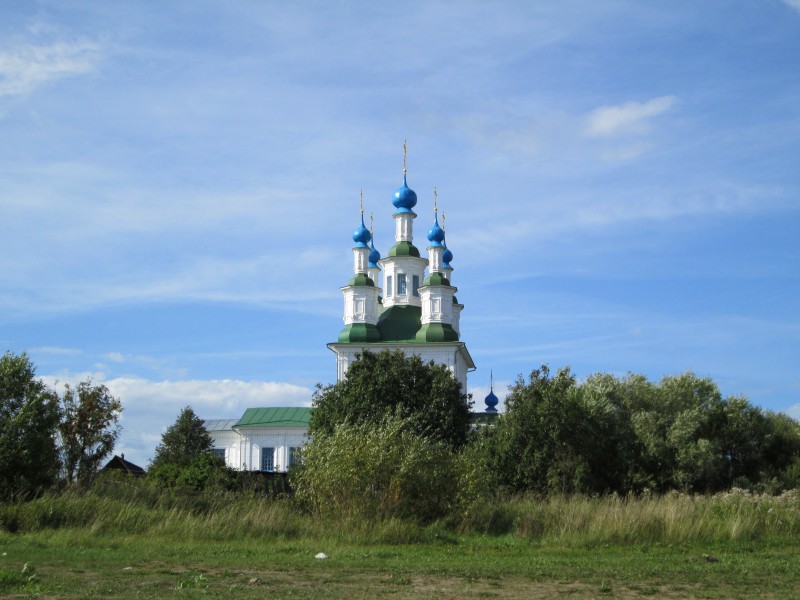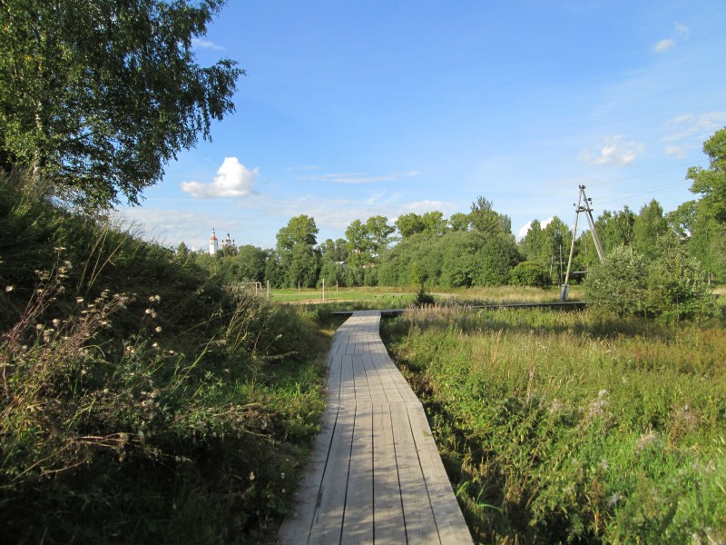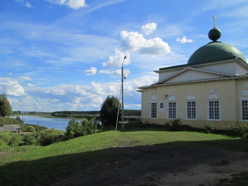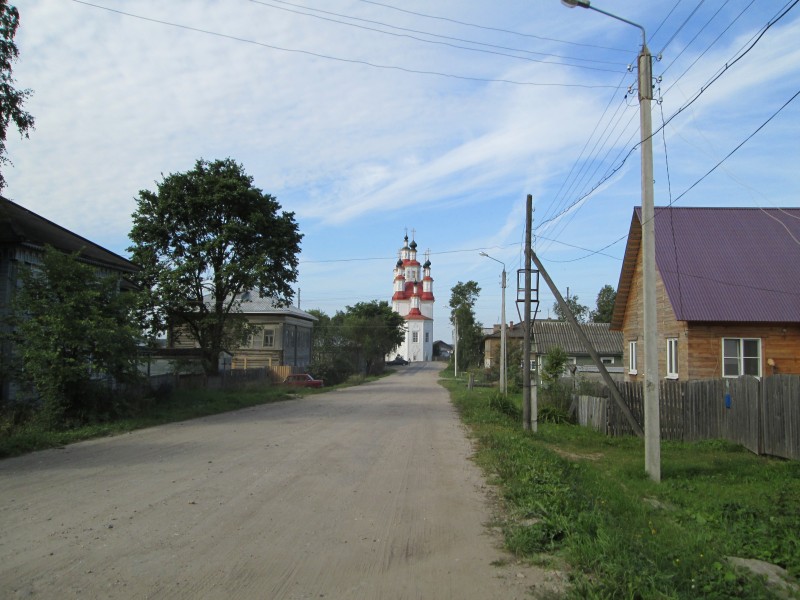 Вдали видна церковь, но напрямую к ней не пройти - впереди впадающая в Сухону Пёсья Деньга.