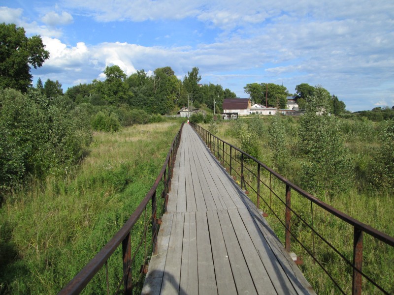 А вот и мостки (официально - Зеленский пешеходный мост) через Пёсью Деньгу. Сейчас её и не видно в траве и кустах, а по весне тут наверно всё залито.