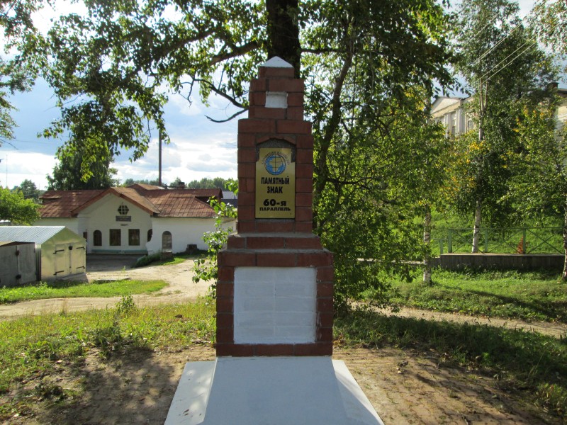 Памятный знак для лохов-туристов. Реально до 60-й параллели отсюда километра 4 на север, аж за Варницы. Вот в Варницах, кстати, я и не побывал, забыл.