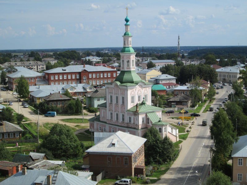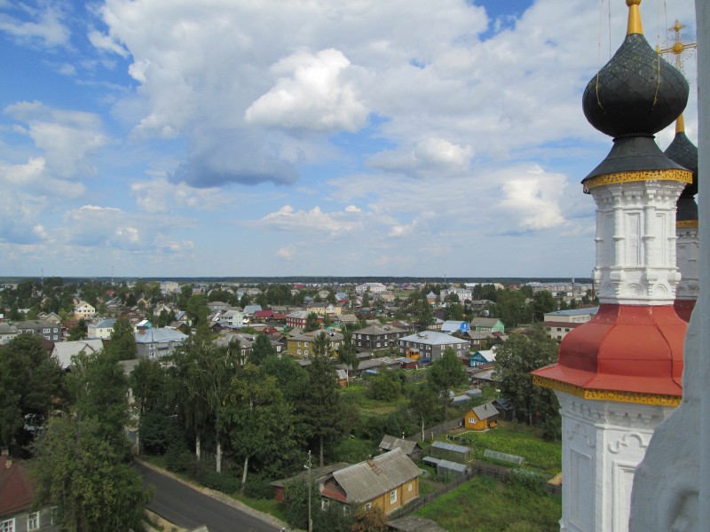 Вид с колокольни Музея Мореходов. Вдали - Сухона и Церковь Троицы.