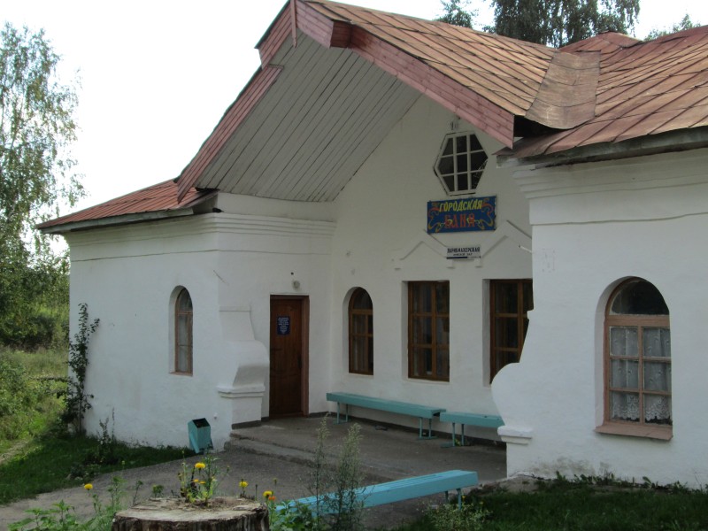 Пройдя пару кварталов от автостанции по Белоусовской улице, поворачиваем направо, на ул.Кирова и видим Входоиерусалимский храм. Перед ним, слева, гостиница "Рассвет" (не видна за деревьями).
