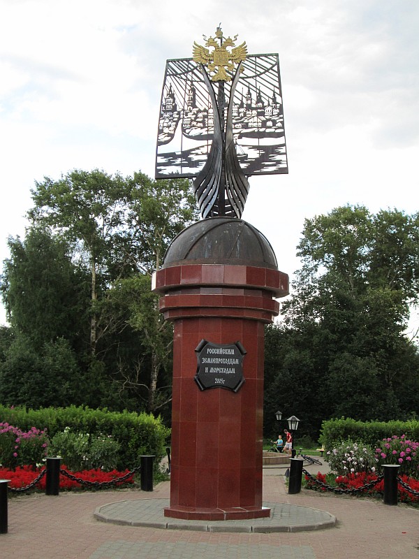 Памятник тотемским мореходам на центральной площади города.