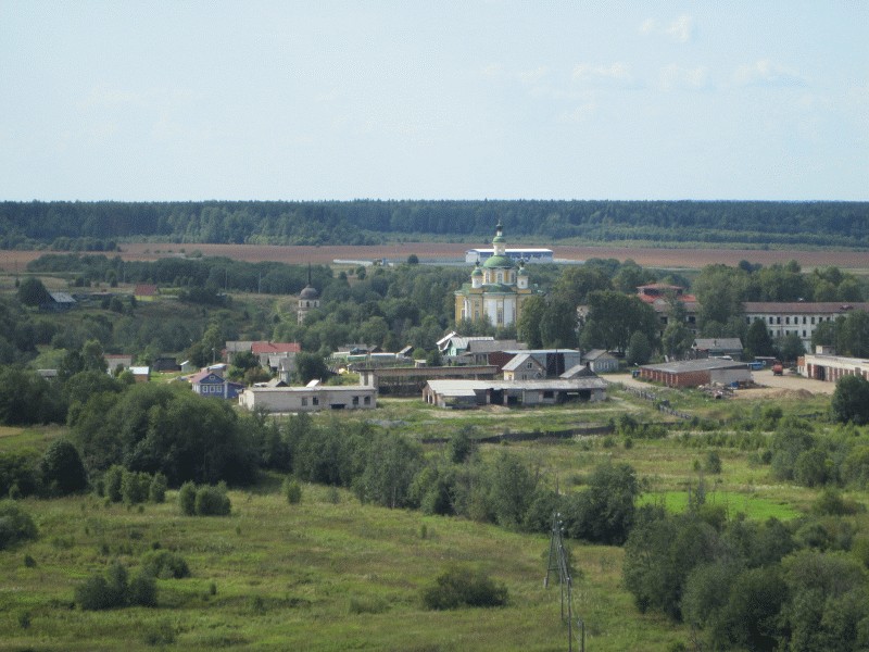 Вид на посёлок и монастырь с колокольни Музея Мореходов.