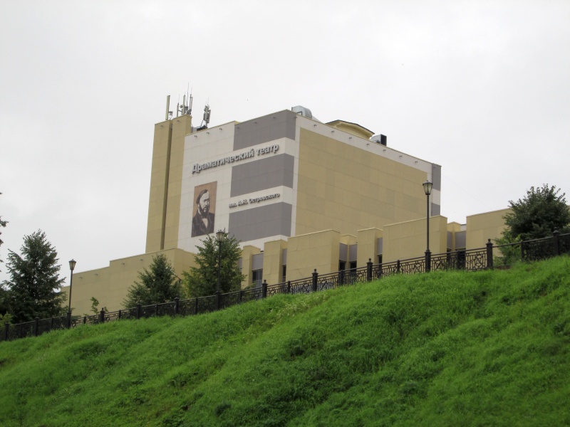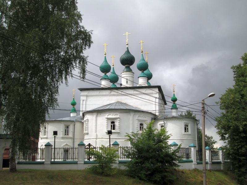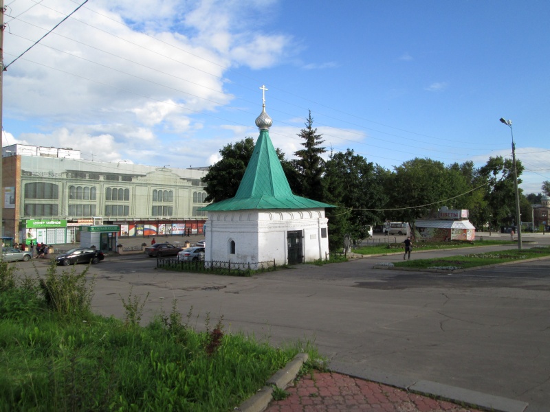 Через дорогу от театра две церкви - Вознесенская и Иоанна Златоуста. Нормальных кадров не получилось - всё вокруг плотно застроено + деревья, провода, да ещё и солнца не было.