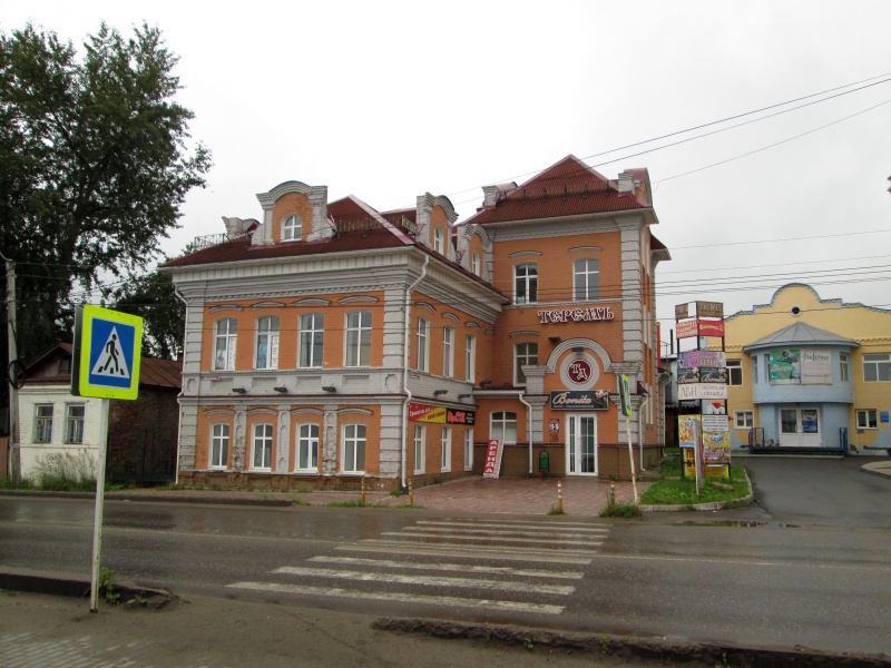 Речной вокзал. По большей части переоборудован под торговлю. Плюс есть ресторан.