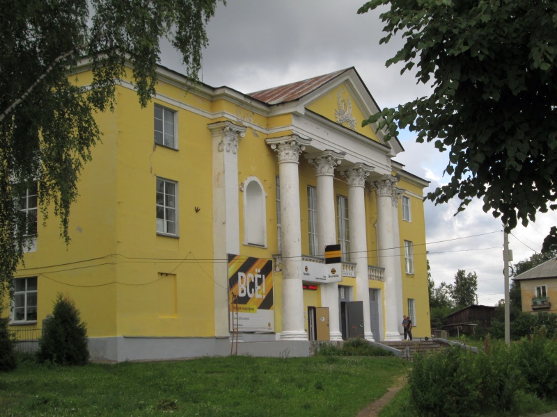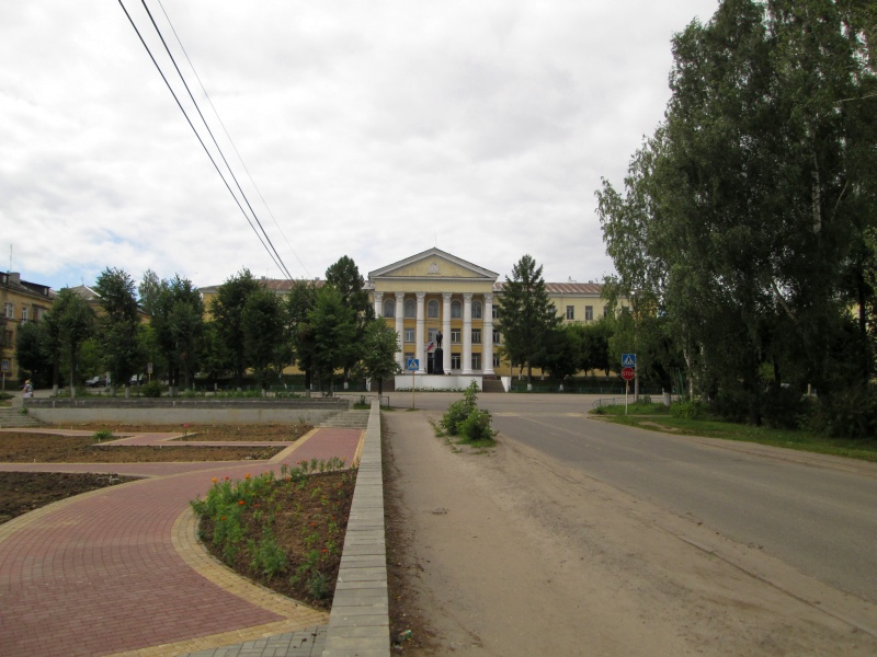 Администрация. В подвальном этаже - столовая. Готовят хорошо и недорого - рекомендую. Слева сквер благоустраивают. Справа, чуть далее - гостиница Лазурь. В ней тоже вёлся вялотекущий ремонт.