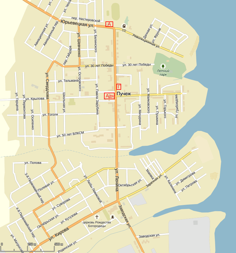 Пририсовал местонахождение автостанции, администрации и гостиницы.