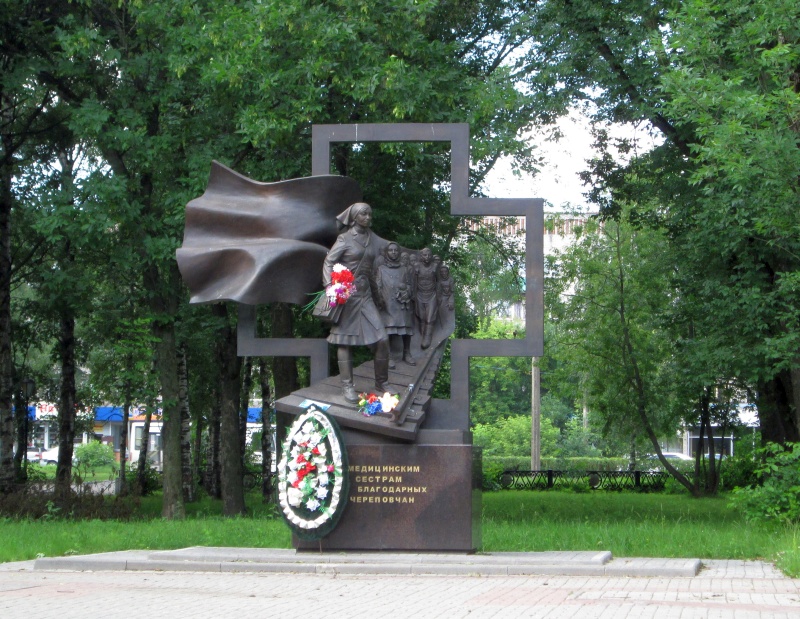 Памятник военным медсёстрам в привокзальном сквере.