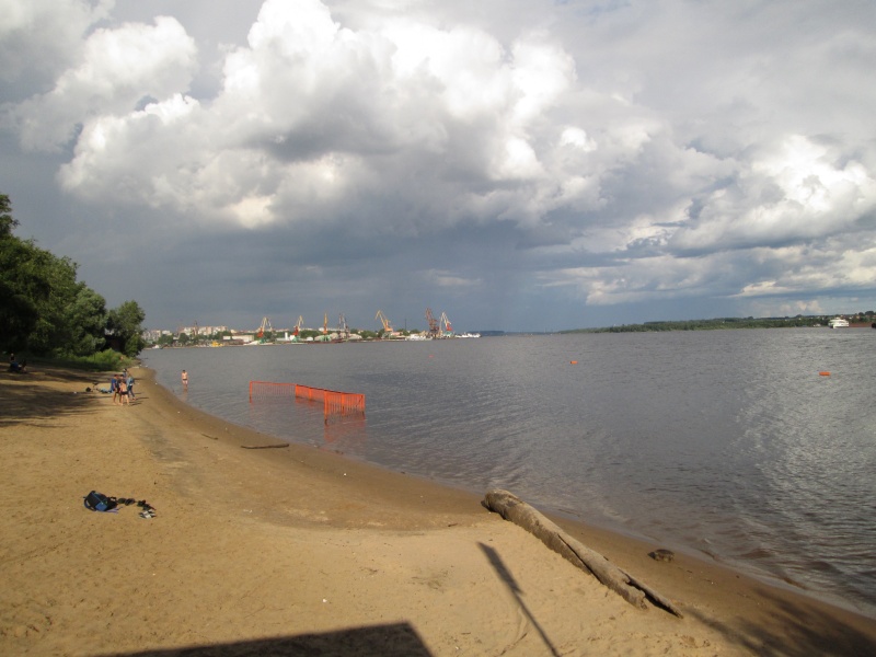 Спустился мимо парка (по ул.Горького) к пляжу, прошёл под Октябрьским мостом.