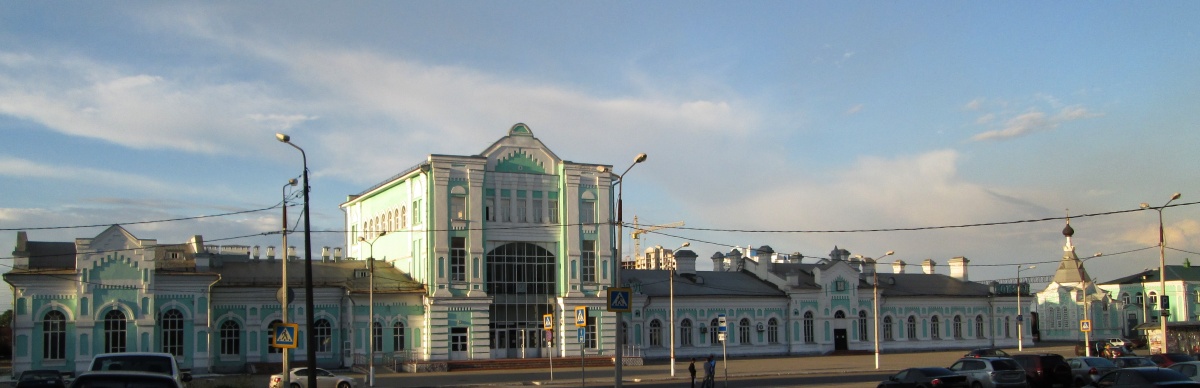 И комплекс вокзала в лучах заката.