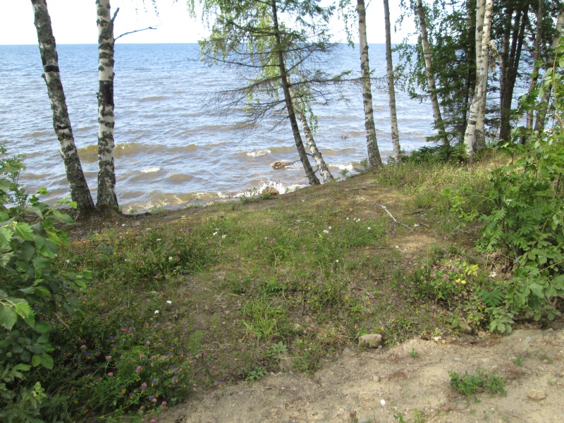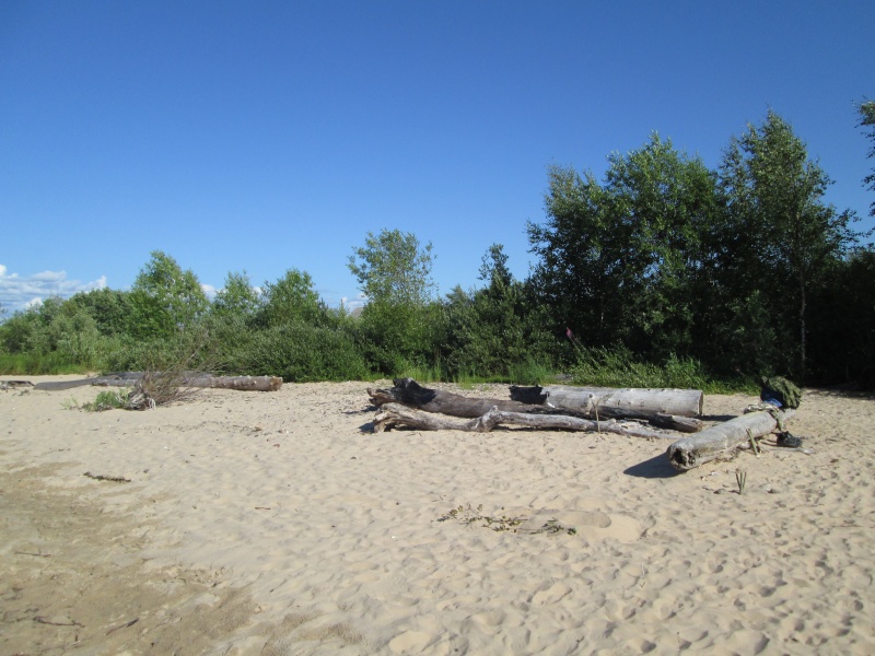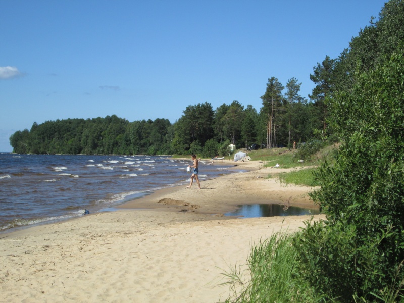 Все козырные места ближе к концу пляжа (там травянистые бугры подходят вплотную к воде, там удобно ставить палатки) уже были заняты (а был четверг!). Я подумал - а что же здесь будет в субботу? Место легкодоступное, от Вытегры километров 35 по хорошей дороге.