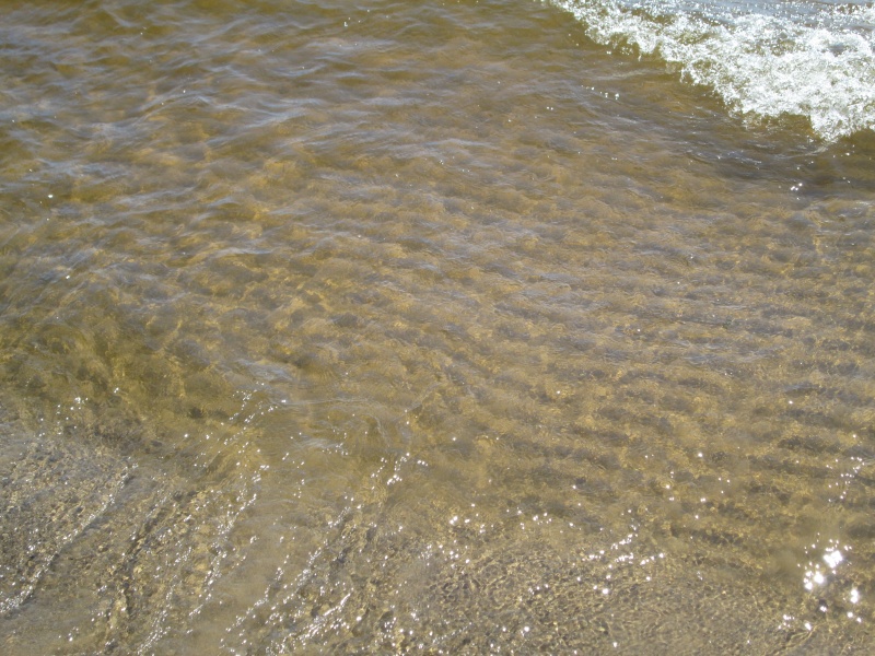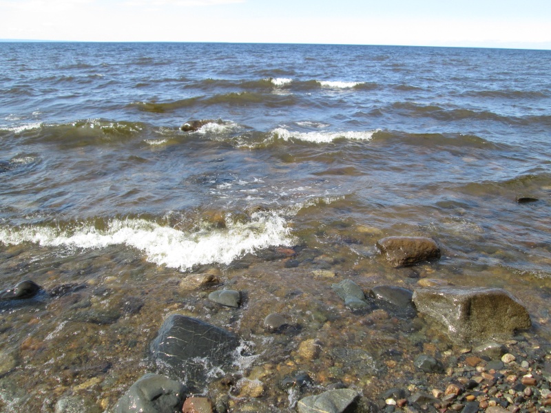 Берег тут из крупной гальки, а дальше в воду - так вообще валуны начинаются...