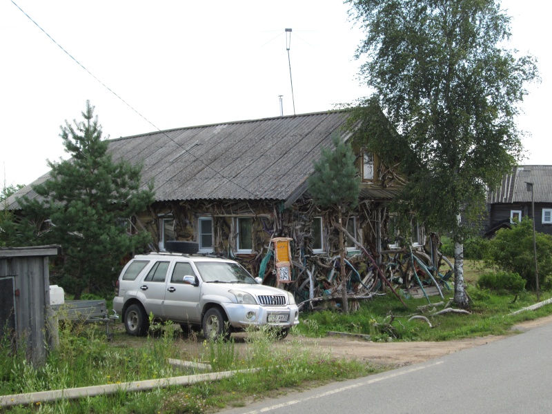 Дом художника, я его потом встретил у реки. Человек бросил большой город и переехал жить сюда. У него ещё есть участок с гостевыми домиками ближе к Андоме-реке - так что он ещё немного и буржуй. Ну ещё даёт разные мастер-классы всяким заезжим-приезжим-начинающим. Ну и сайтик в инете, где он продаёт свои творения и зазывает в гости (отдохнуть или поучиться).