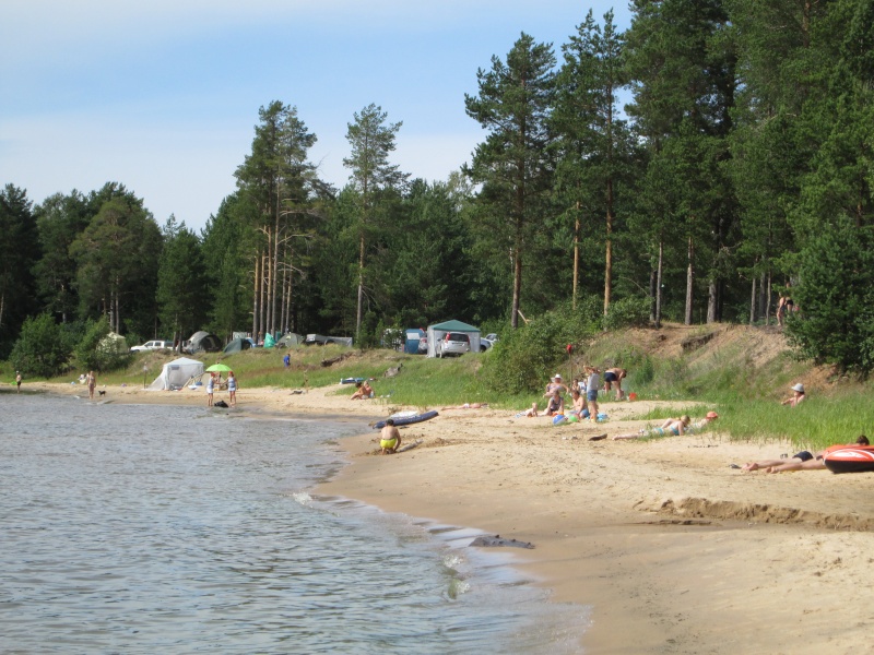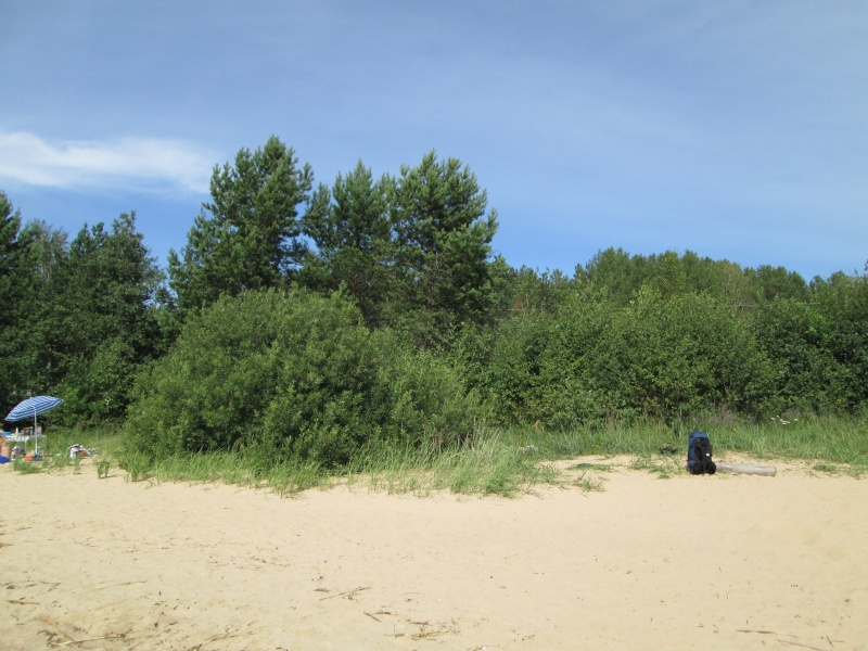 До 13 часов купался, загорал, потом свернул палатку, собрался - вон мой рюкзачок стоит уже полностью упакованый - и в 14:10 отчалил. Дорога, кстати, прямо за кустами.
