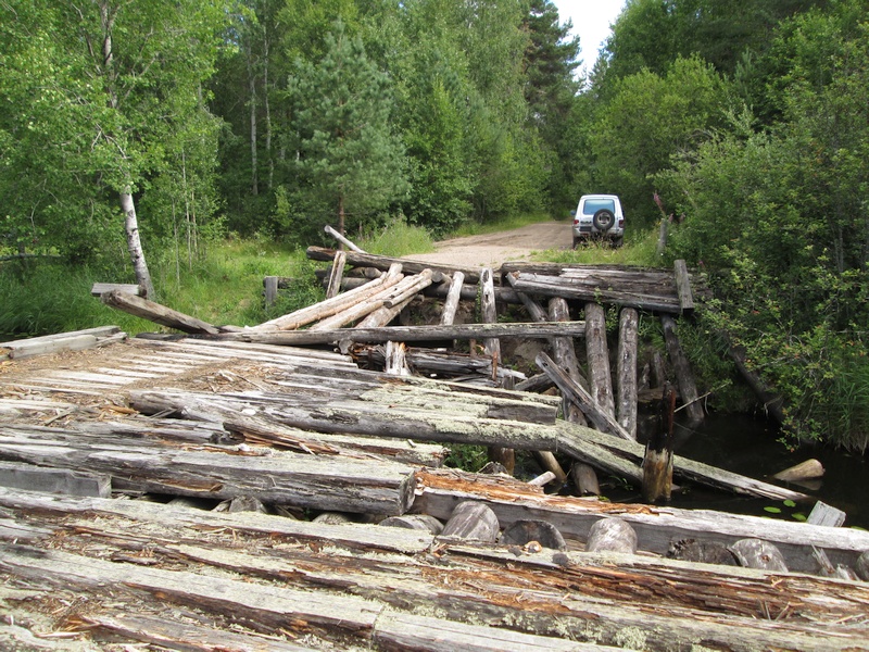 Мост - взгляд назад. Местные доезжают до моста, бросают машины и идут дальше по гибы-ягоды пешком. "Рихтовать" мост наверное должен Путин.