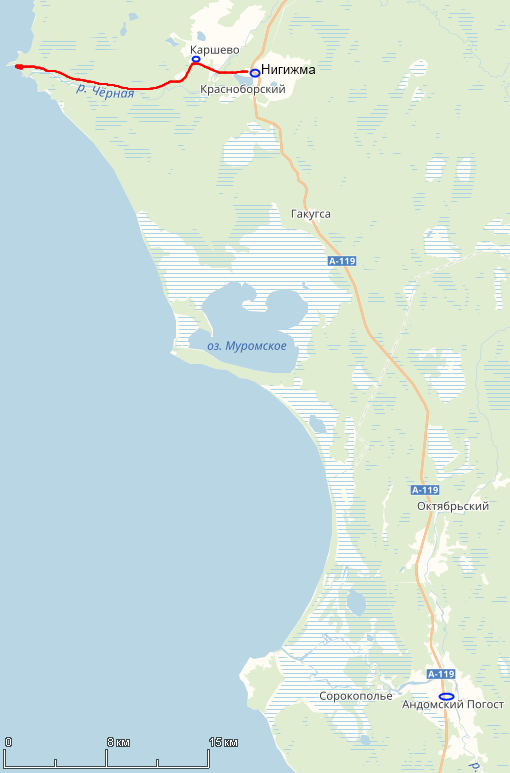 Речка Чёрная минимум на пол-пути к Бесову Носу.