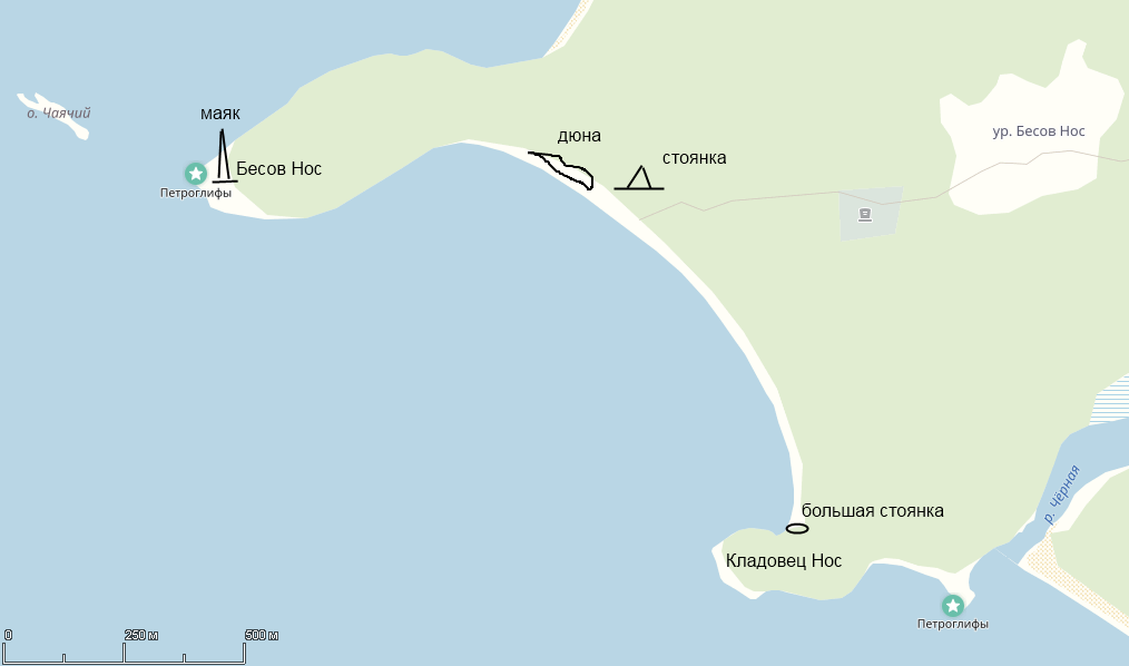 Человечек, которого местные монахи почему-то назвали "бесом" (он и дал название мысу) и пририсовали крест.