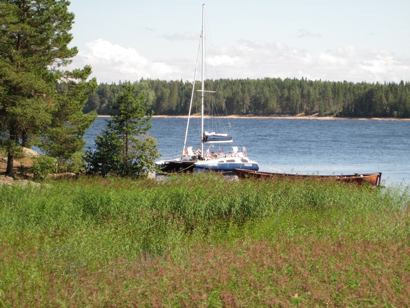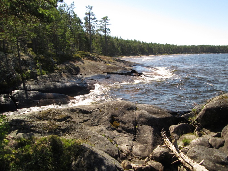 План на этот день простейший - лениво собраться (перекусить, искупаться, свернуться), сделать последний бросок до посёлка (километра 4), там сесть на местный автотранспорт и добраться до Пудожа, где вписаться в гостиницу и наслаждаться благами цивилизации - горячей водой, холодным пивом, чистой постелью и цветным телевизором!