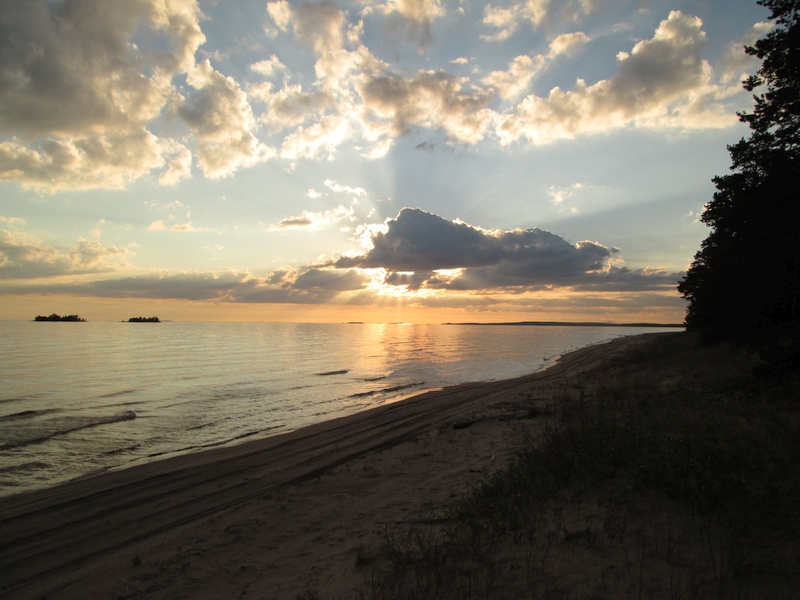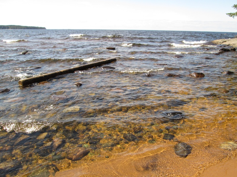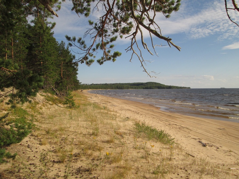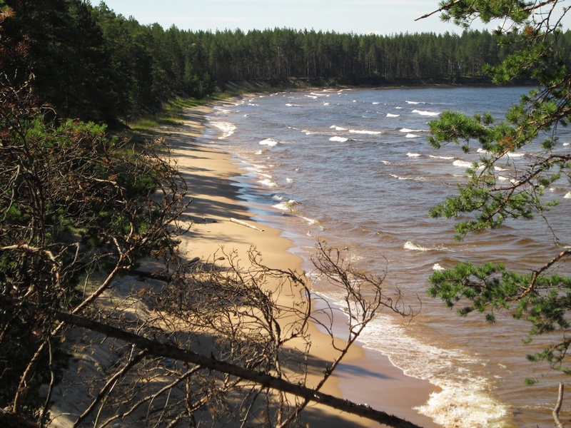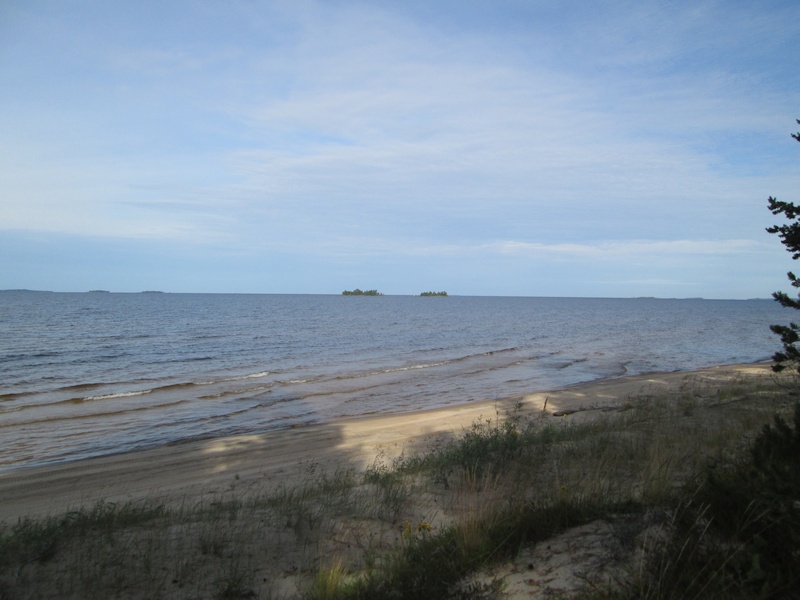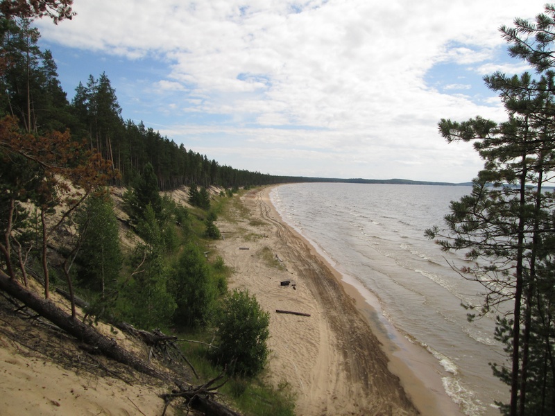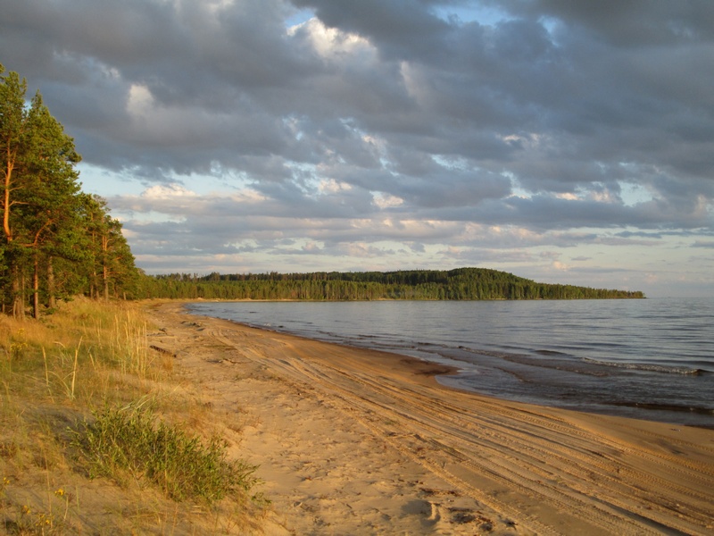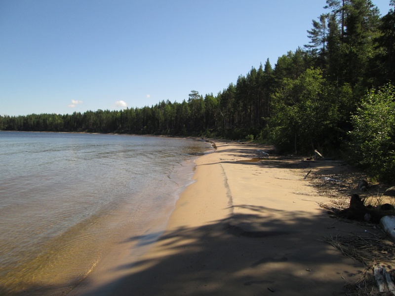 Идти по таким пляжам чертовски приятно - плотный мокрый песок, не вязьнешь, ветерок с озера приятно обдувает, шелест волн с одной стороны и шелест листвы с другой располагают к раздумьям....