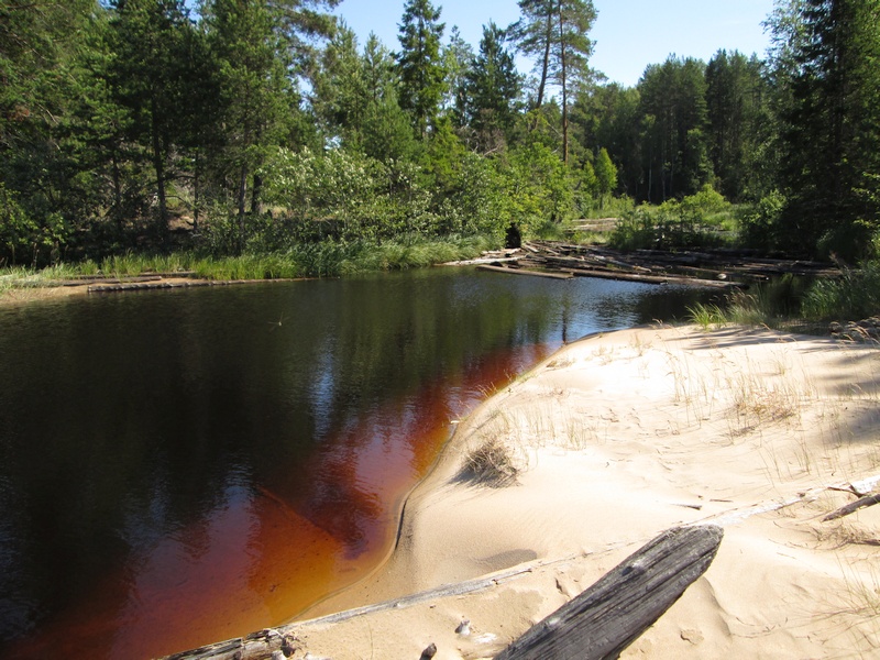Не хватает у неё сил "влиться" в озеро. Гадал - это каждое лето так или только сейчас? Брал с собой гермомешок для самых важных вещей - ни разу не понадобился. А на спутниковых снимках виды были такие, как будто придётся раза 2-3 форсировать речушки по 10-15 метров шириной.... Может снимки были весенние, в половодье?