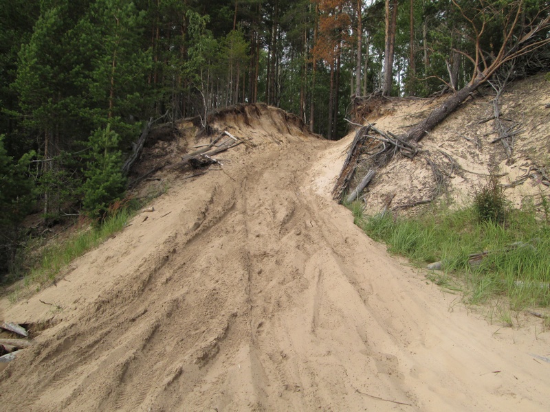 Песчаная дорога идёт вверх, чтобы обойти сразу несколько носов - Карицкий и пару Труфатских (это пару километров по лесу).