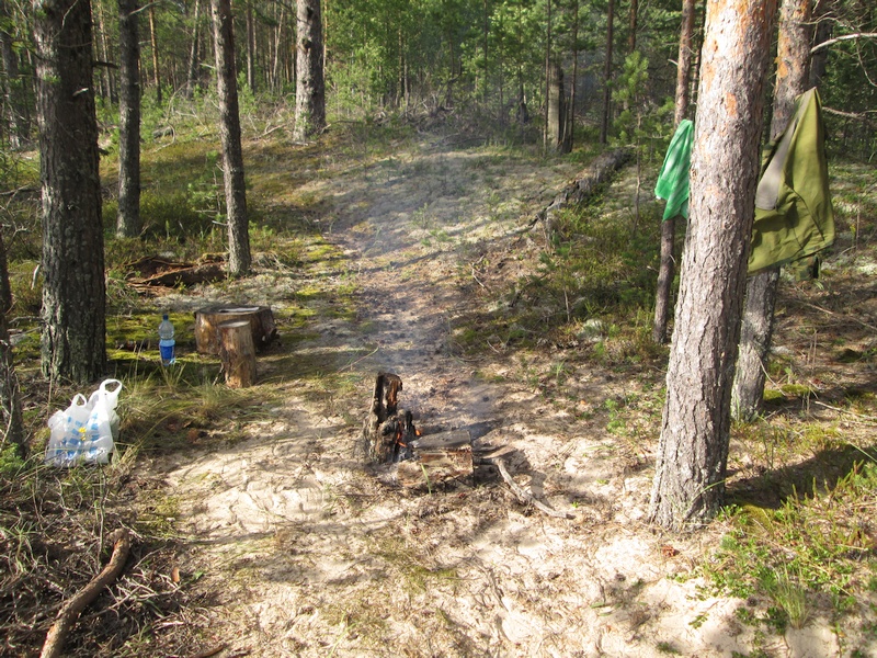 Сушняка много - ничего пилить не надо. Да и другие уже постарались - есть два чурбака - "стул" и "стол".