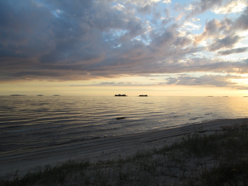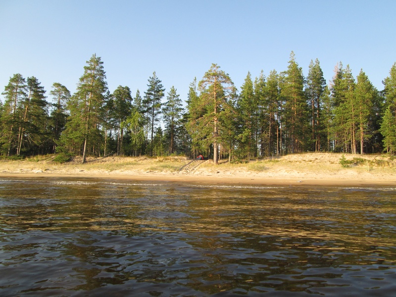 После 22:00 Онега стала расходиться - пошла волна, ощущение было что волны бъют чуть ли не в палатку....