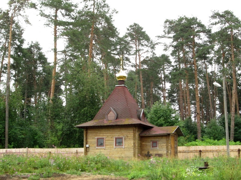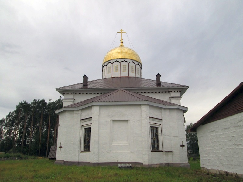 За церковью стоит вот такая часовенка, наверное советских времён, а за ней - старое кладбище.