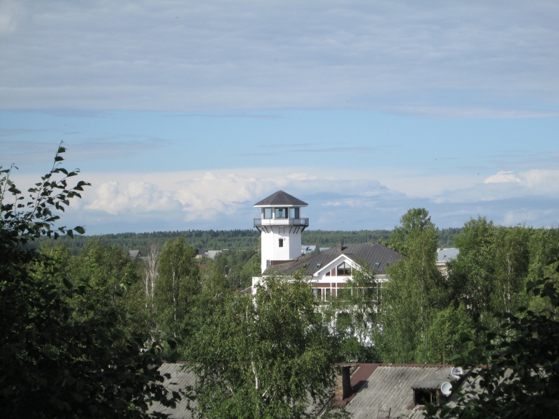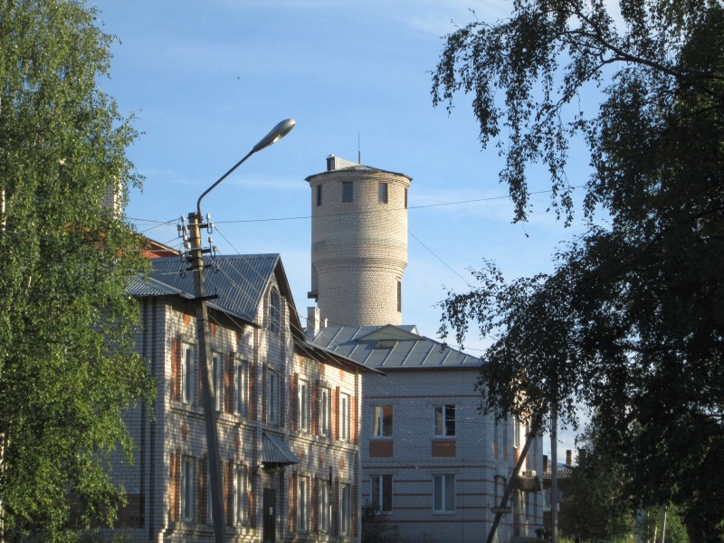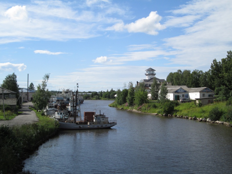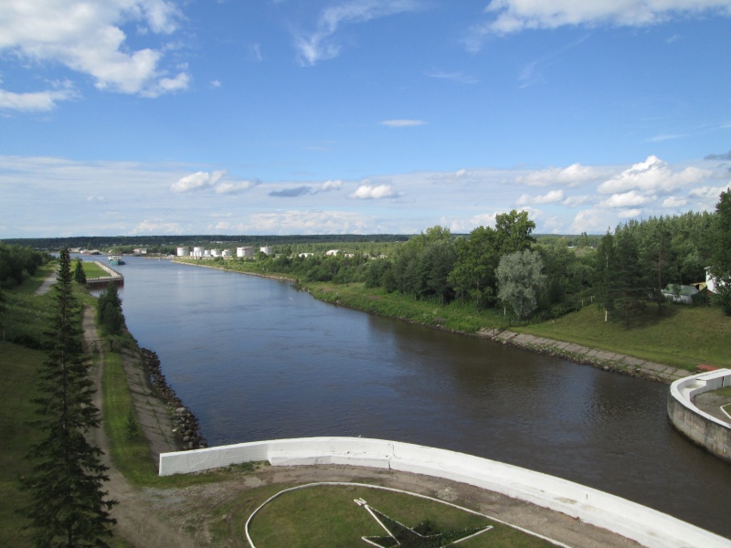 Это, собственно, русло реки Вытегра. Здание с башенкой - пятизвёздочный "отель" Wardenclyffe Volgo-Balt. Современный. Назван в честь известнейшей башни Wardenclyffe Николы Теслы. Когда-то здесь была Вянгинская пристань, а чуть левее, метров на 120 всего, был старый шлюз №1.