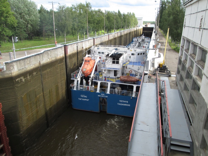 Посудина зашла в шлюз, и я просто не верю свои глазам - это Тетис, порт приписки - Таганрог!!!