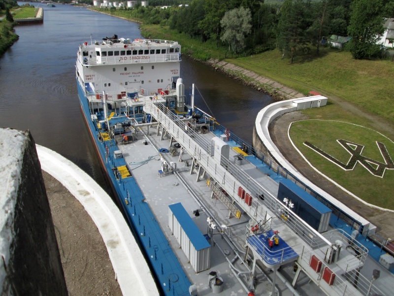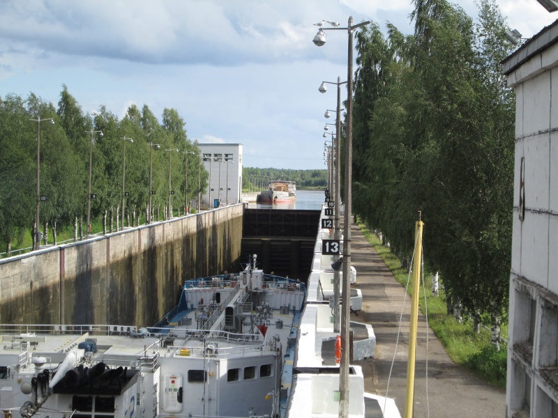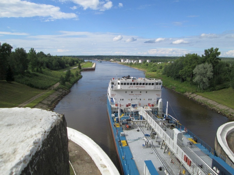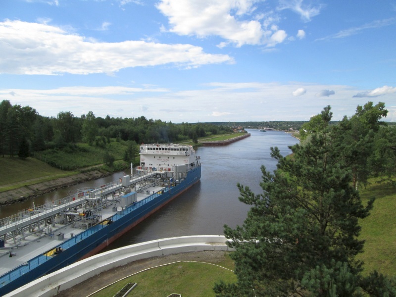 Какая-то посудина как раз втягивается в шлюз со стороны озера (до озера миль 7-8).