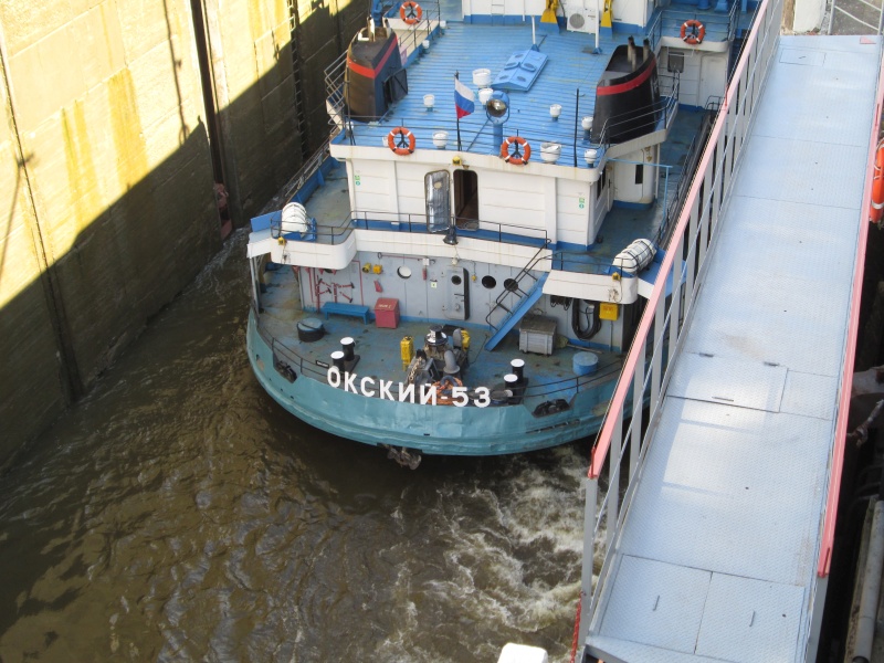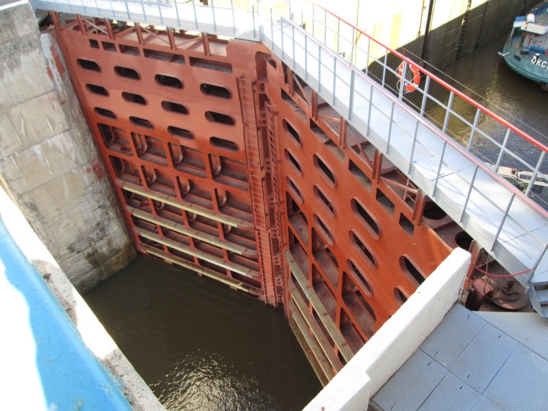 ... и осторожно - двери закрываются! Сейчас будут пускать воду в шлюз, чтобы поднять суда до уровня канала.
