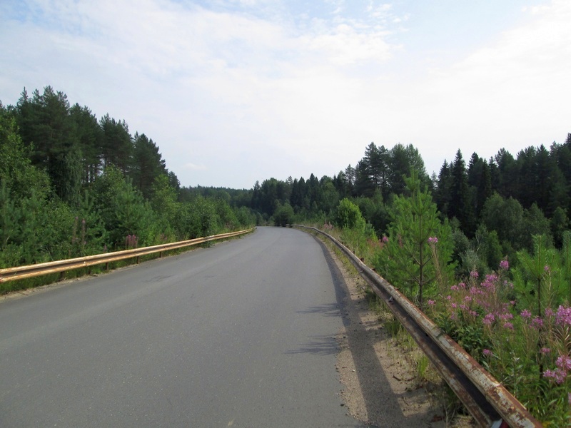 Мужик высадил меня на трассе у поворота на Усть-Реку и сказал что дальше машин будет совсем мало (или вообще не будет), ибо этот поворот ведёт к последнему кусту деревень, а дальше, до границы с Архангельской областью, ничего нет.