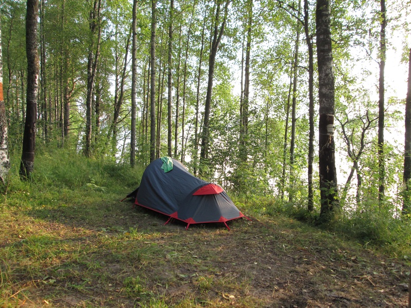 При желании палатку можно и не разворачивать - пенка, спальник - и спи под навесом. Только комары доставать будут.
