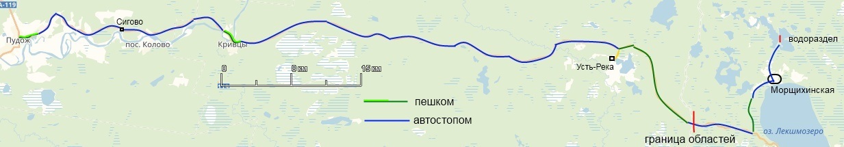 Если не повезёт - придётся заночевать где-то между трассой и Морщихинской, чего совершенно не хотелось. Хотя у меня и был день в запасе, но усталость уже накопилась - ведь это был уже 11-й день путешествия!