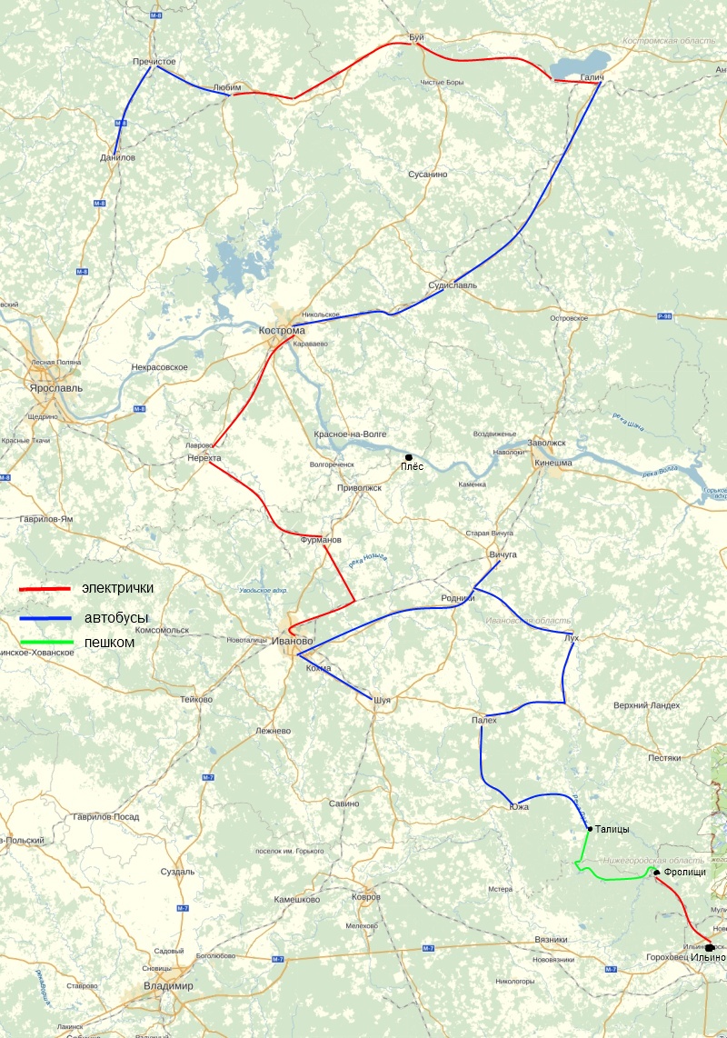Ивановская: Палех, Лух, Вичуга, Шуя, Иваново, Фурманов.